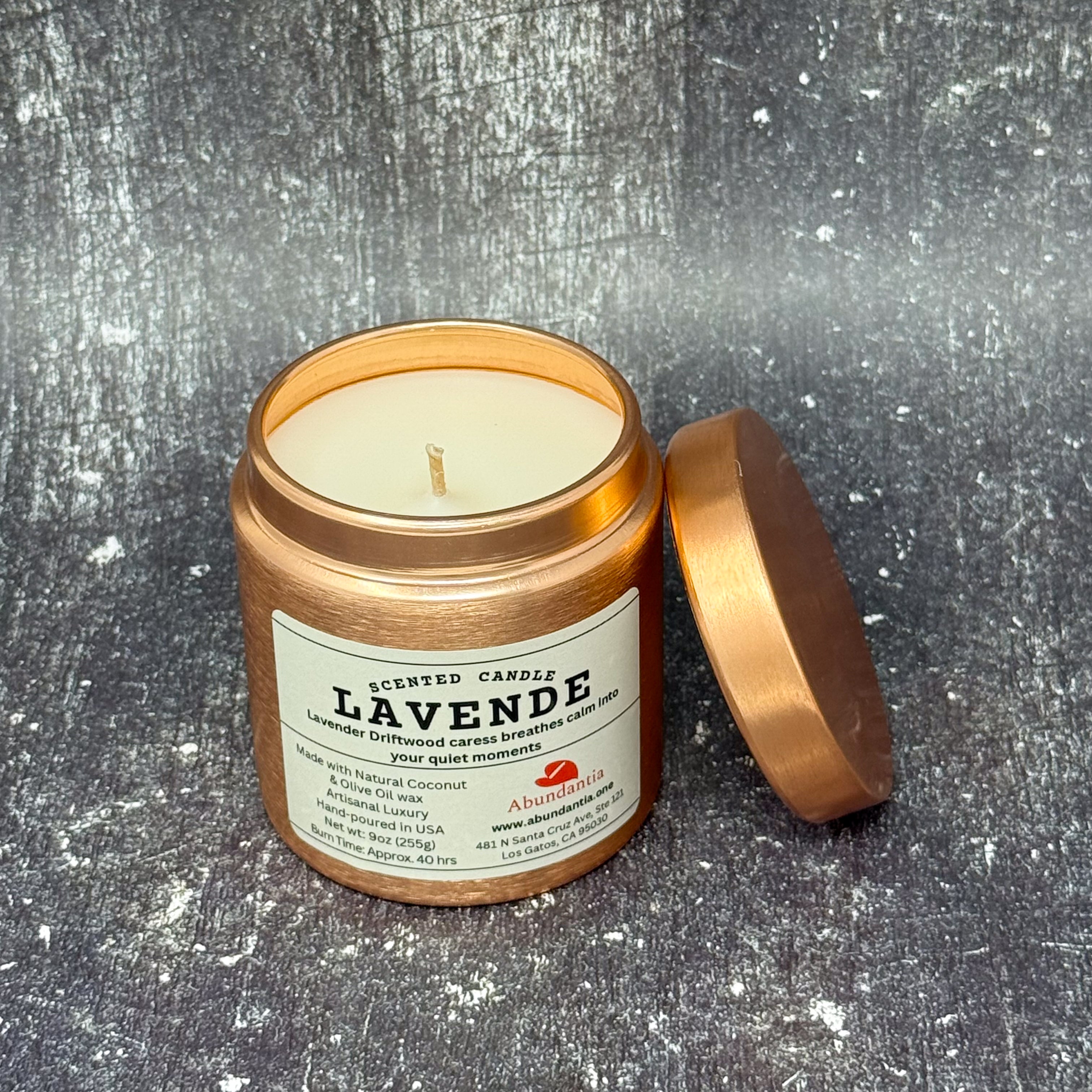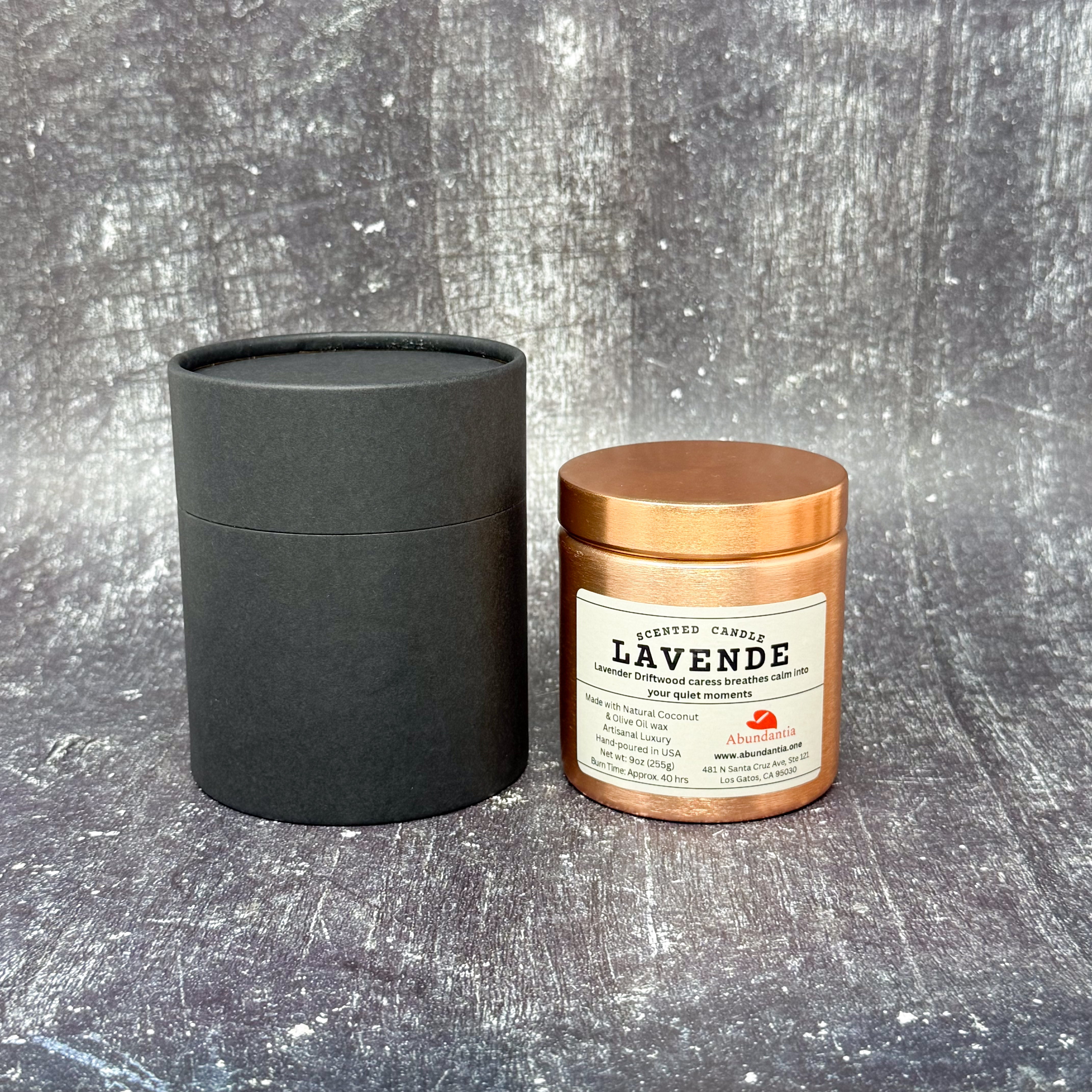 - Metal Tin with Lid: Copper color, reusable and recyclable. Candle Net weight: 9oz (255g)