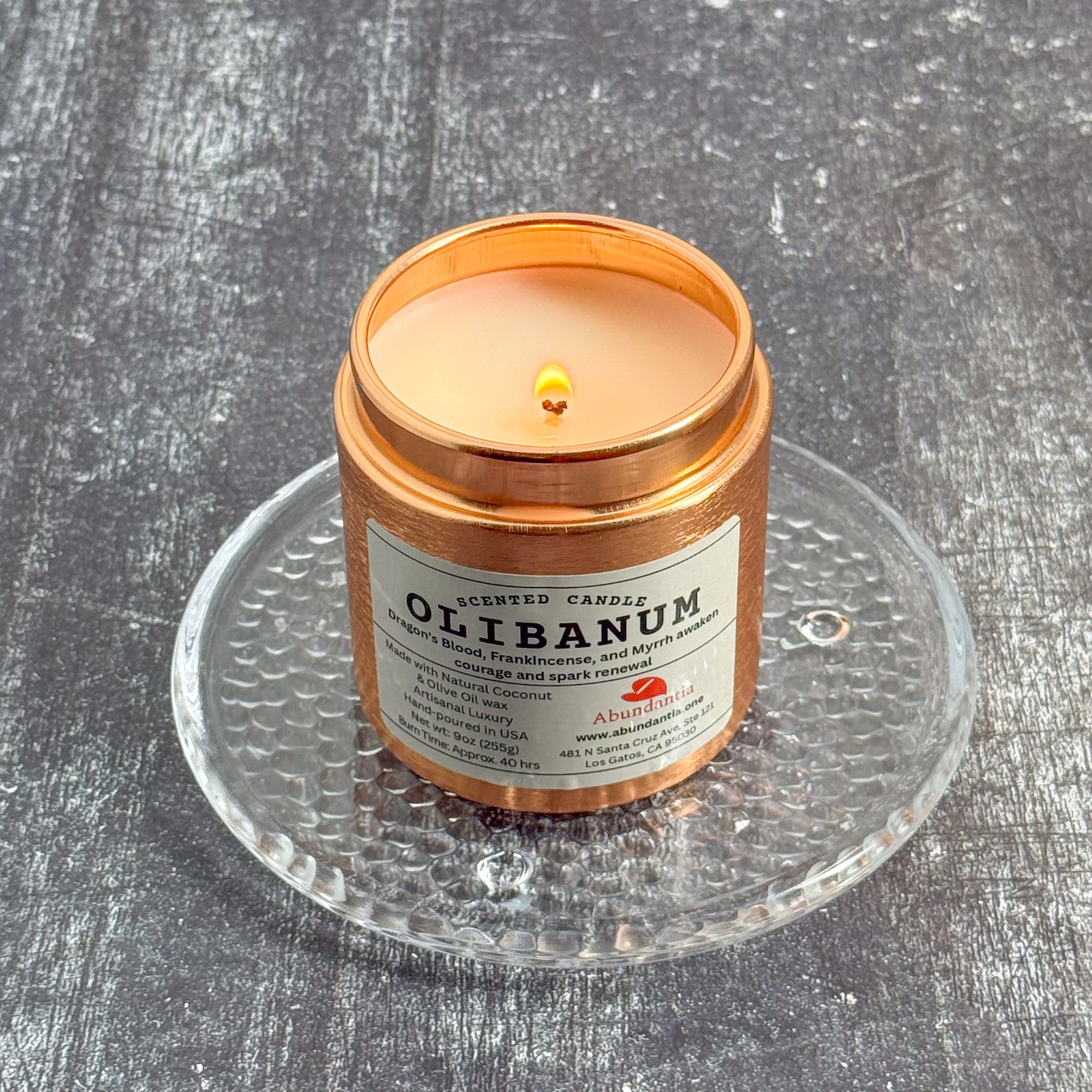 - Metal Tin with Lid: Copper color, reusable and recyclable. Candle Net weight: 9oz (255g)